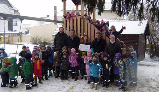 Mitfinanzierung einer Spielkombination für behinderte und sozial benachteiligte Kinder. Die höhenverstellbaren Schaukeln fördern die Wahrnehmung für Raum und Lage, sozial auffällige Kinder erlernen am Spielgerät den sozialen Umgang und die Rücksichtnahme im Alltag.